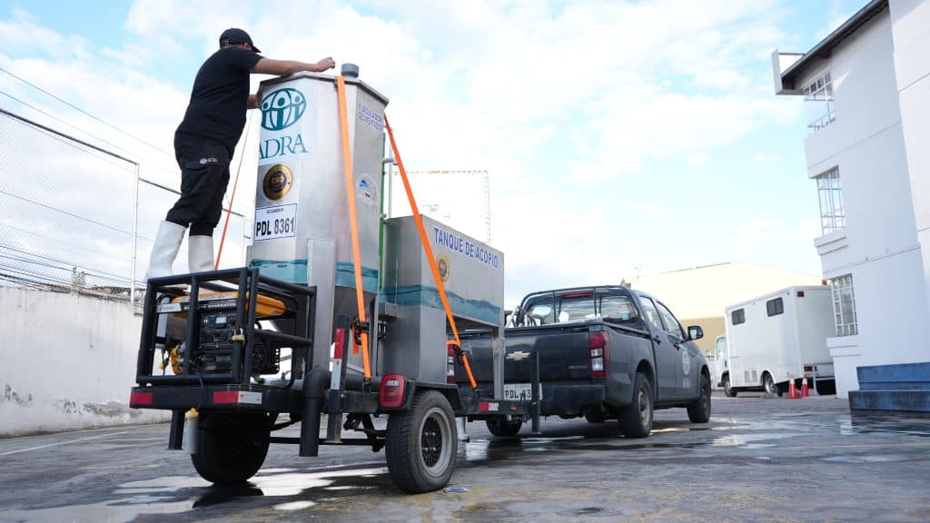 ADRA Ecuador activa su planta potabilizadora de agua, con una capacidad de producción de 100 mil litros diarios y laboratorio de control de calidad del agua por la emergencia en el sur de Quito.