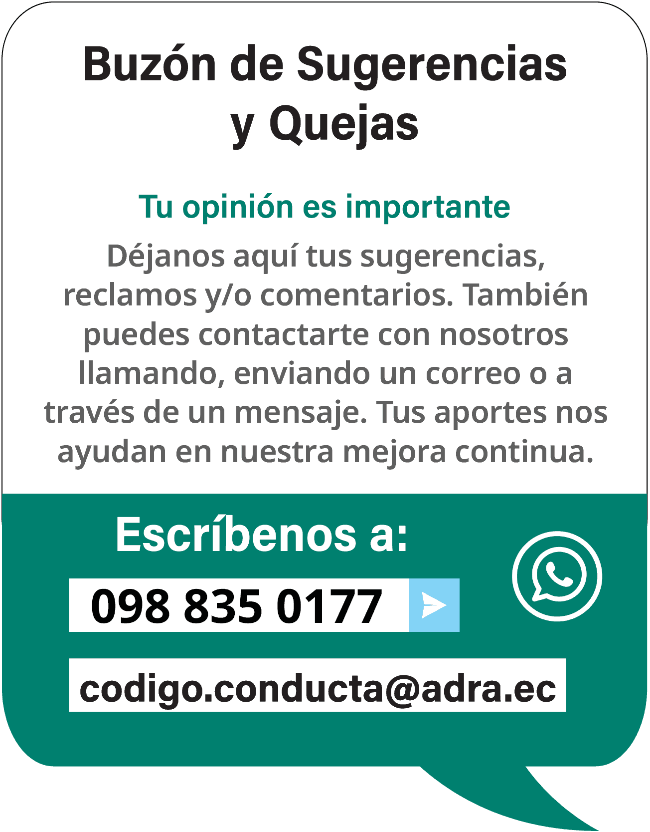 Tu opinión es importante, si necesitas comunicarte con nosotros, puedes hacerlo a través de:
